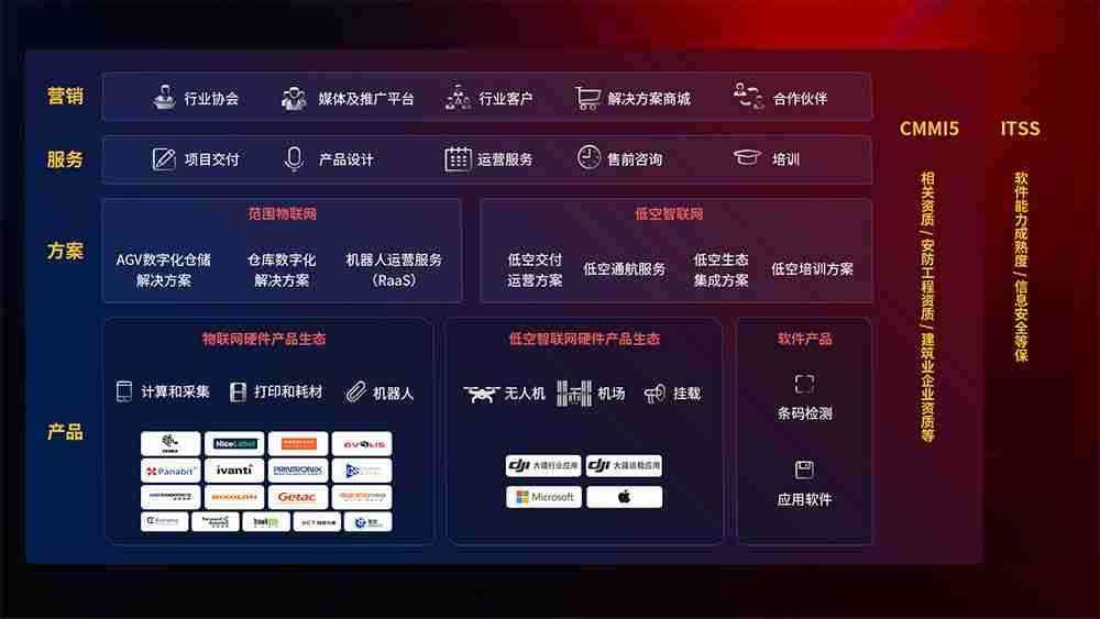 聚合国内外先进的物联网硬件产品品牌,,,,聚焦数字化仓储、、、机器人运营、、、、低空智联网等领域,,共同打造适合客户业务场景的解决方案并提供交付服务